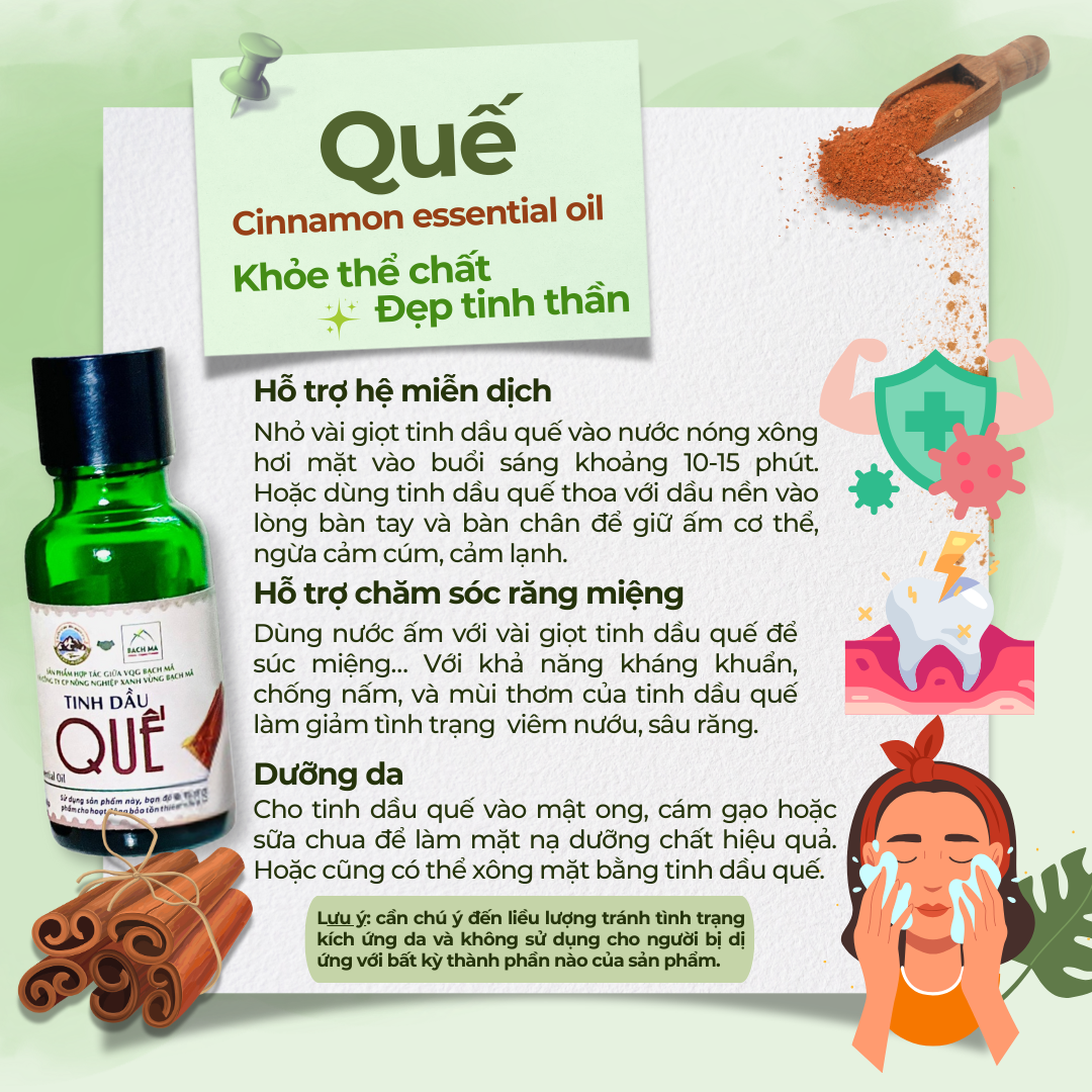 Thành phần: Tinh dầu tự nhiên chiết xuất từ lá và vỏ cây Quế.